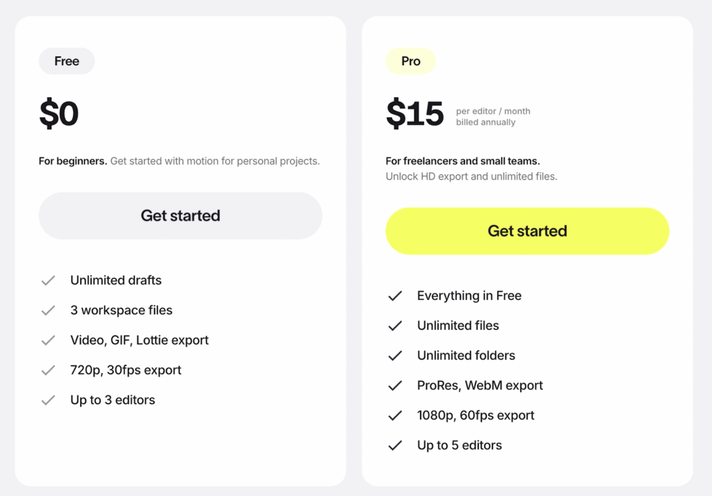 Key Features: Pre-built animation presets, UI-focused motion tools, Figma import support, timeline editing, and instant preview in the cloud.
