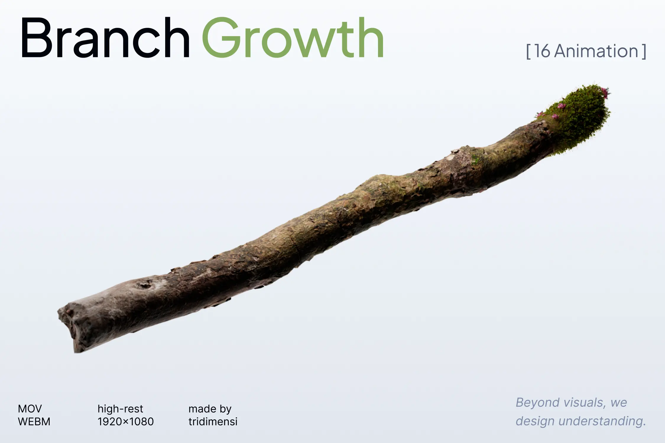 Bring your visuals to life with this unique 3D animation collection featuring 16 growing tree branches covered in moss and pink flowers. Each animation is 10 seconds long and rendered in Full HD (1920×1080), making it ideal for nature-inspired design, branding, or motion graphics projects.
