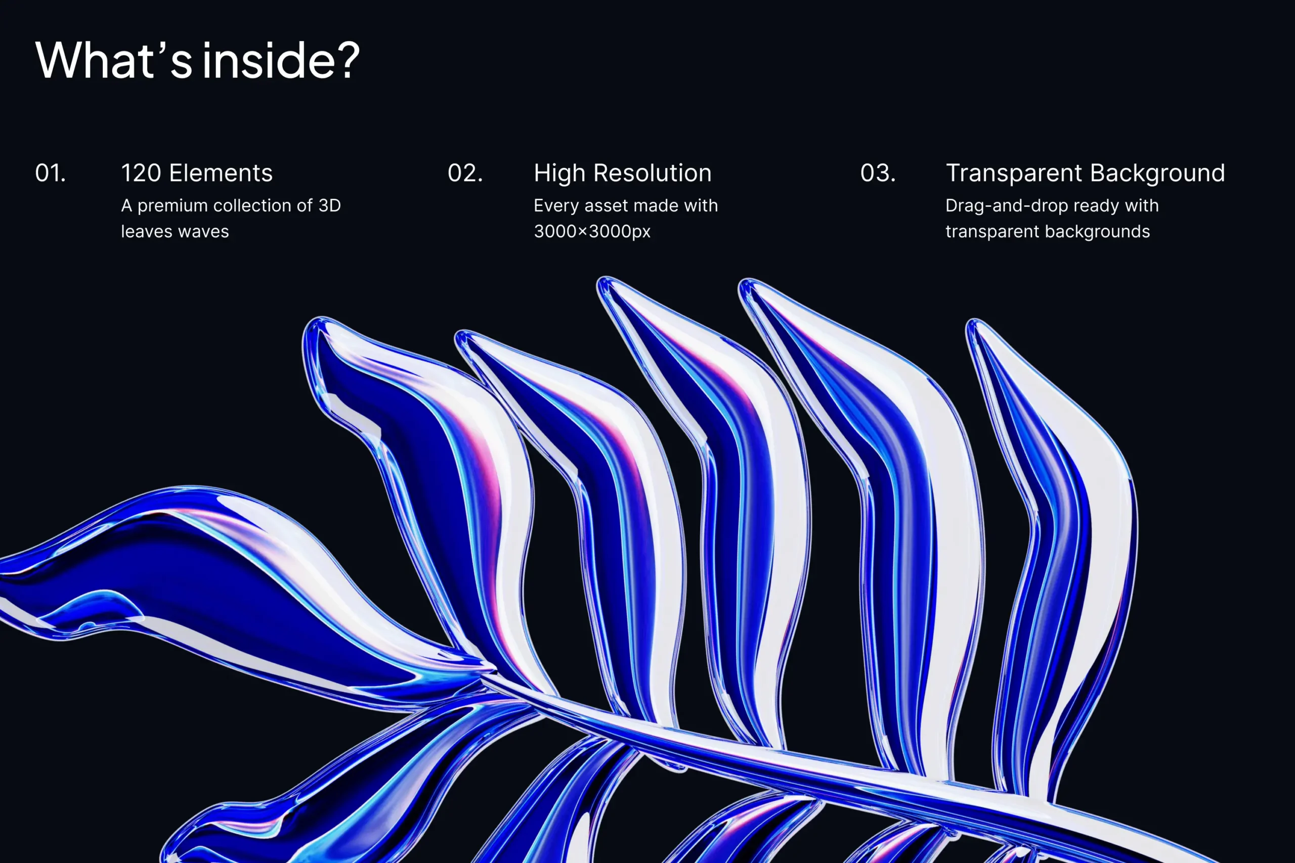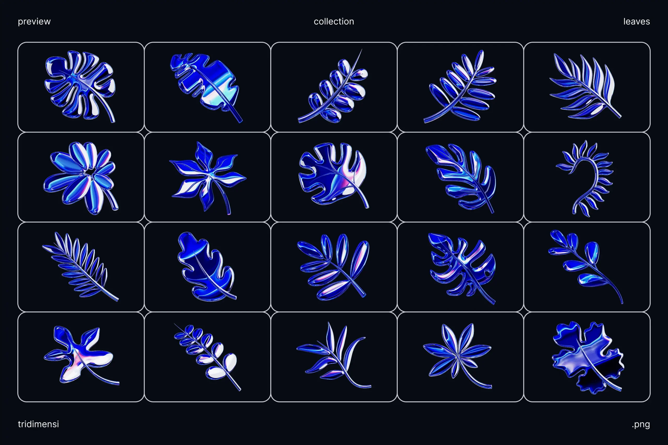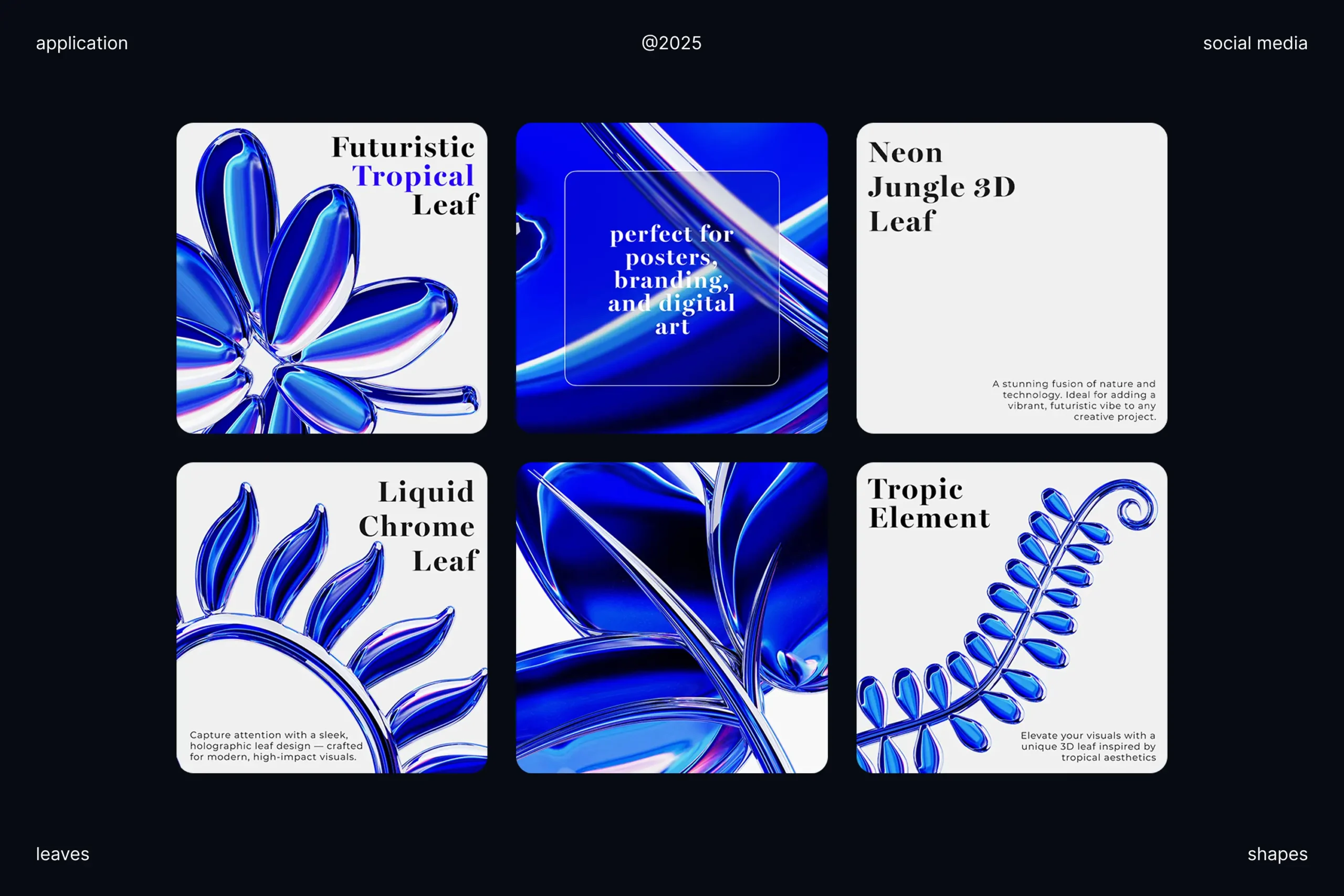 This vibrant pack features 120 high-resolution 3D leaves with a sleek neon blue chrome finish, perfect for adding a modern, digital-nature twist to your creative projects. Ideal for posters, UI/UX design, social media visuals, product branding, and any contemporary artwork.